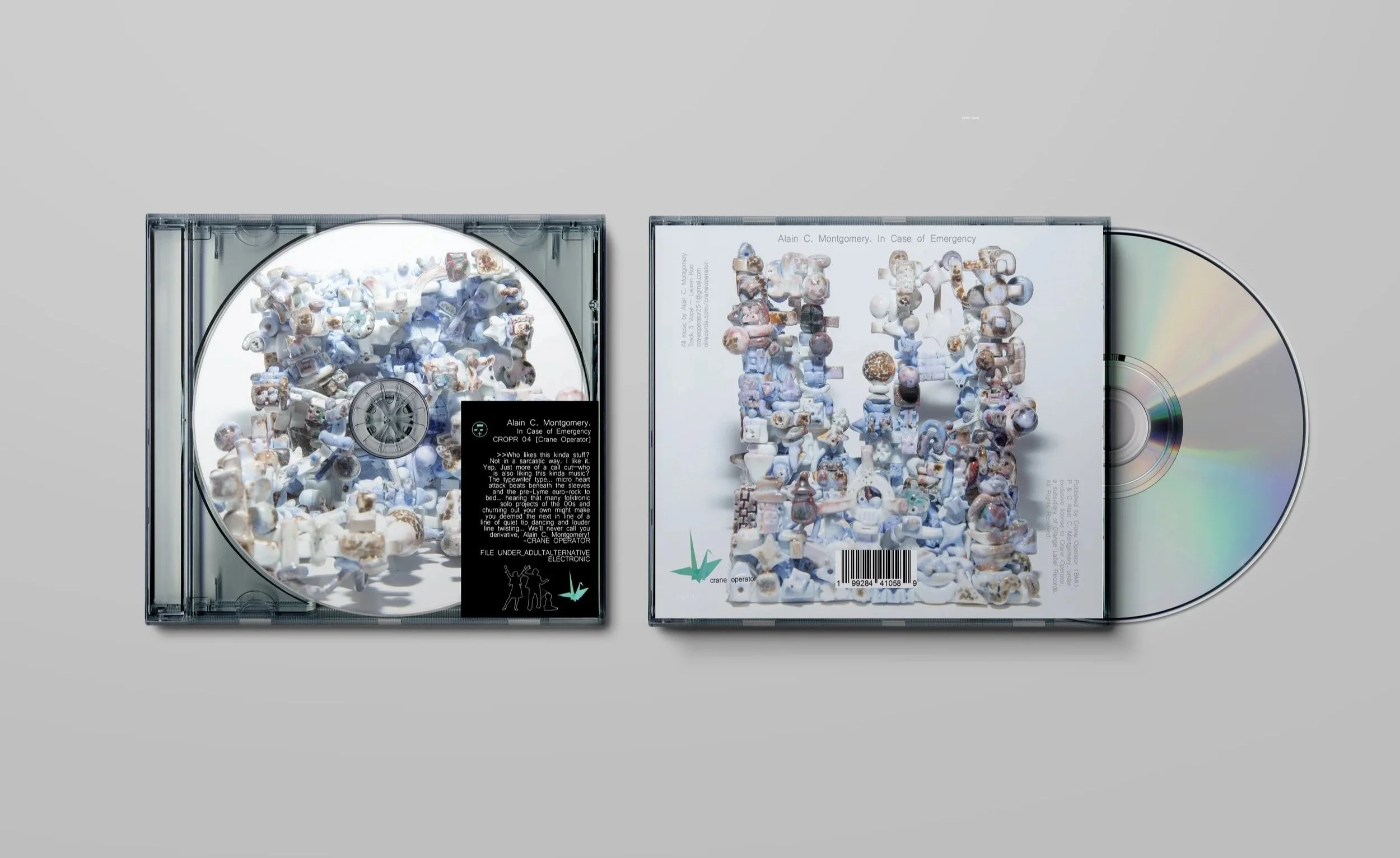 November 17, 2025——Alain C. Montgomery today shares his second project, In Case of Emergency, out now via Crane Operator. The 9 track album will see a limited CD, the cover featuring a custom ceramic sculpture by artist Trey Ross. This marks Alain’s second release for Crane Operator, Orange Label Records’ flagship instrumental electronic label——listen here and pre-order the CD here.